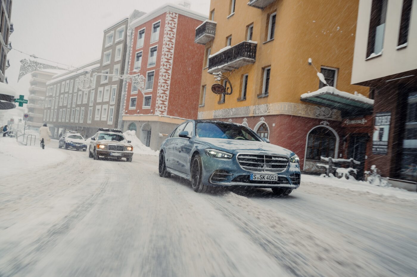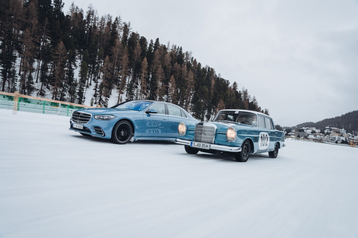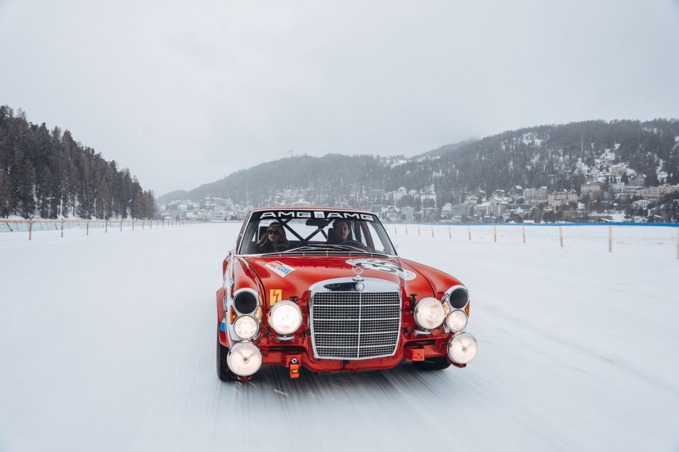 Aus der Werkssammlung zeigt man in St. Moritz zwei Modelle der S-Klasse: einen 300 SE Renntourenwagen der Baureihe W 112 aus dem Jahr 1963 sowie den 300 SEL 6.8 AMG Renntourenwagen (W 109) von 1971 – besser bekannt als „Rote Sau“, wobei es sich bekanntlich um einen detailgetreuen Nachbau des Original handelt. Als weiteres Fahrzeug zeigt man einen 300 SE „Heckflosse“ als Limousine mit der Startnummer 102 des belgischen Teams Robert Crévits/Gustave „Taf“ Gosselin, den Gesamtsiegern im 24-Stunden-Rennen von Spa-Francorchamps am 25. und 26. Juli 1964. Mit dem Fahrzeug erinnert Mercedes-Benz Classic an das 100-jährige Bestehen dieser Rennsportveranstaltung seit 1924.