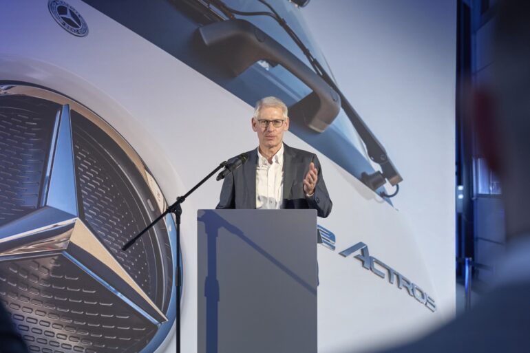 Mirko Sgodda, Leiter Marketing, Sales und Customer Services Daimler Buses: „Das neue Nutzfahrzeugzentrum Mercedes-Benz Stuttgart markiert nicht nur einen bedeutenden Meilenstein für Daimler Truck, sondern auch für Daimler Buses. Wir freuen uns besonders über die Integration von Busservices am Standort Stuttgart. Damit stärken wir zum einen unser europaweites Servicenetz, welches das größte busspezifische Servicenetz in Europa ist und zum andern setzen wir auch neue Maßstäbe bei Wartung und Reparatur von Fahrzeugen mit Batterie- und Brennstoffzellen-Technologie. Unser Anspruch bei Daimler Buses ist es, unsere Kunden bestmöglich bei der Transformation zur Elektromobilität zu unterstützen. Dies erreichen wir durch die enge Verzahnung eines flächendeckenden Servicenetzwerks, höchste Kompetenz bei Zukunftstechnologien sowie ganzheitliche Konzepte für die Mobilität von morgen, die wir mit der Daimler Buses Solutions GmbH umsetzen.“
