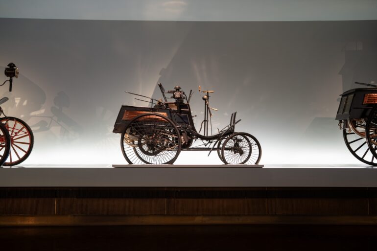 1894 ist das wegweisende Benz Motor-Velociped mit Leichtbaukonstruktion ein Wendepunkt für die Automobilindustrie. „Dieses Fahrzeug wurde uns buchstäblich aus den Händen gerissen. Was wir davon erzeugten, wurde verkauft.“ So erinnert sich Automobilerfinder Carl Benz 1909 in einem Interview. Insgesamt entstehen von 1894 bis 1902 im Mannheimer Benz-Werk rund 1.200 Fahrzeuge dieser Typfamilie kompakter Benz-Automobile. Das kurz „Velo“ genannte Modell ist damit der erste Serienpersonenwagen der Geschichte.