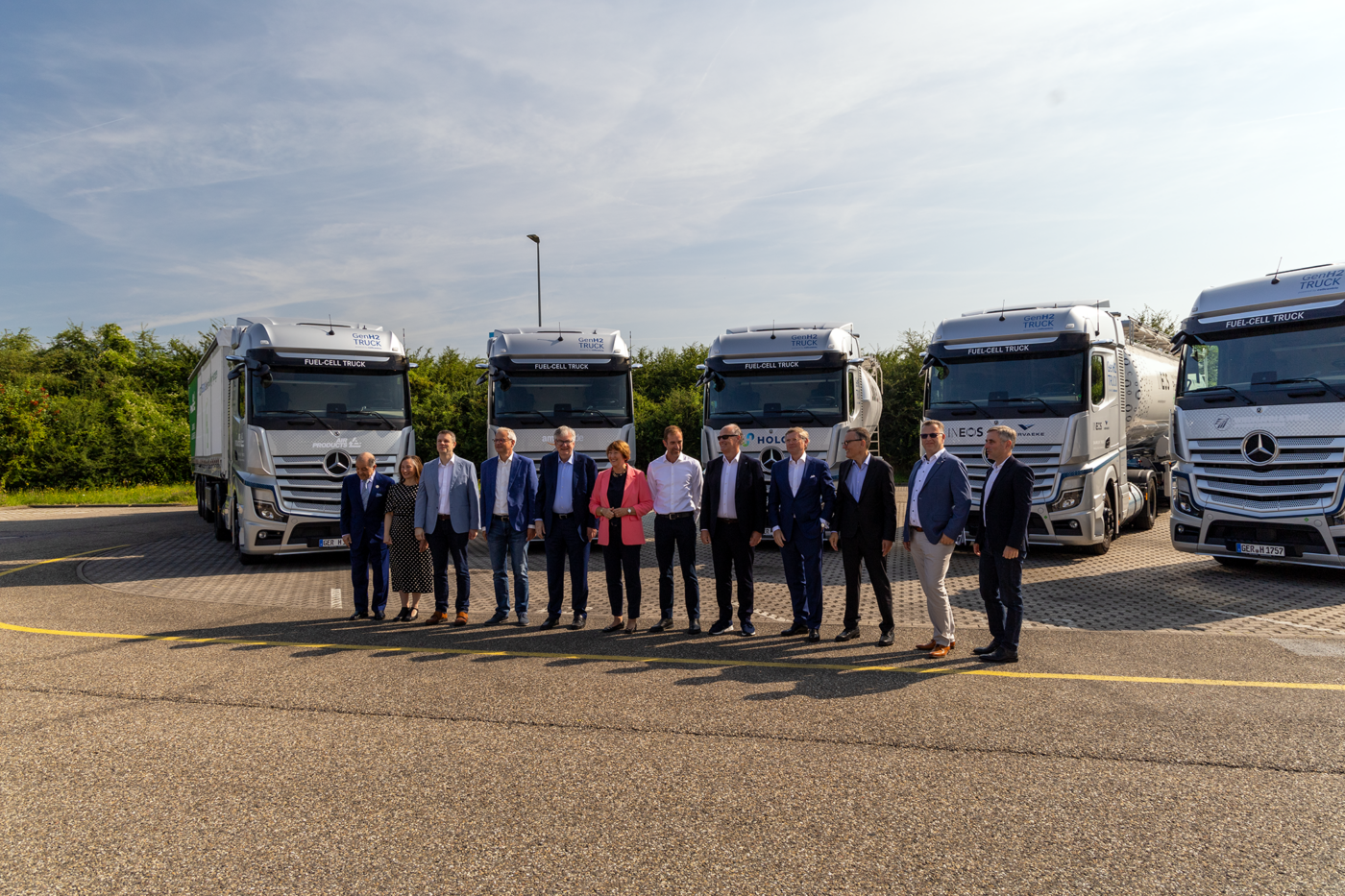 Die heutige Übergabe der Fahrzeuge an die Unternehmen erfolgte in Anwesenheit von Hildegard Müller, Vorsitzende des Verbands der Automobilindustrie (VDA) sowie Martin Daum, Vorstandsvorsitzender von Daimler Truck im konzerneigenen Entwicklungs- und Versuchszentrum in Wörth am Rhein.