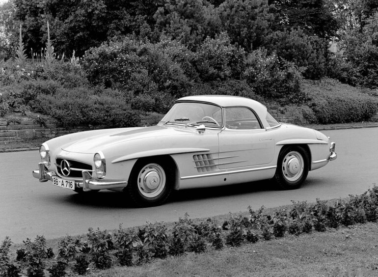Der SL wurde zum Traumwagen für die Traumfabrik. Er spielte über viele Jahrzehnte in etlichen Kinofilmen mit. Zum Beispiel in „On the Beach“ von 1959 mit Gregory Peck, „The Betsy“ von 1978 mit Laurence Olivier und Robert Duvall, „The Rookie“ von 1990 mit Clint Eastwood, Charlie Sheen und Raul Julia, „Batman & Robin“ von 1997 mit Arnold Schwarzenegger und George Clooney oder „The Green Hornet“ von 2011 mit Seth Rogen und Christoph Waltz. Der Pop-Art-Künstler Andy Warhol hob den 300 SL Flügeltürer in den 1980er‑Jahren mit seiner Serie „Cars“ in den Kunst-Olymp. Der Sportwagen ist eine Design-Ikone und hat bis heute Kultstatus.