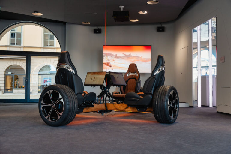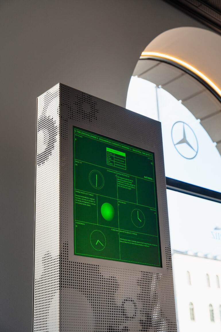 Unter dem Titel „PROTOTYP – Eine Ausstellung der Mercedes-Benz Art Collection im Studio Odeonsplatz“ präsentiert die Kunstsammlung von Mercedes-Benz vom 25. Januar bis 22. März 2025 die Arbeiten von sechs internationalen Gegenwartskünstler, die sich auf verschiedene Weise dem Phänomen „Prototyp“ und seinem Innovationspotenzial annähern. Inspiriert von der Geschichte des Automobildesigns, den zeitgenössischen Medien und der digitalen Kultur lassen ihre Werke physische und digitale Welten verschmelzen. Die Arbeiten reichen von einem experimentellen Videospiel über Blockchain-basierte Integrationen bis hin zu visuellen Kompositionen, die auf dem menschlichen Atem basieren. Die Ausstellung wurde von der Mercedes-Benz Art Collection und dem externen Kurator Christopher Dake-Outhet entwickelt.
