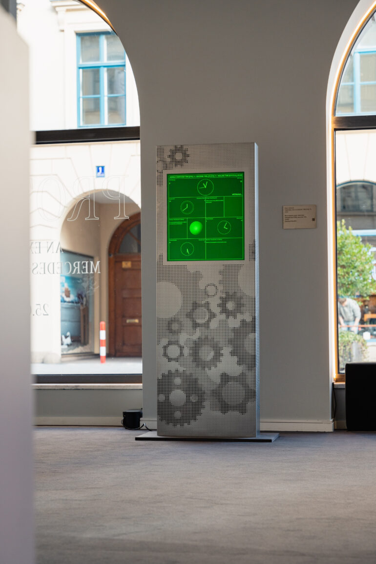 Die Werkserie Temporal Secessionism von Paul Seidler untersucht alternative Systeme der Zeitmessung. In Temporal Secessionism (Timezone 5) betrachtet er die „Produktionszeit“ industrieller Herstellung, die für viele Infrastrukturen maßgeblich ist und parallel zur koordinierten Weltzeit (UTC) läuft. In Advanced Vehicle Transformation schafft Simon Denny mit maschinengestützten Systemen und Blockchain-basierter Technologie hybride Gemälde. Diese malerischen Prototypen erforschen den technologischen Fortschritt durch Motive, die von Mercedes-Benz Konzeptfahrzeugen und historischen Kunstbewegungen inspiriert sind. Mit einer begleitenden Website, die die NFT-Komponente des Werks integriert, untersucht Denny einzigartige Formen von „Bewegung“, indem er sich mit den grundlegenden Elementen der Blockchain auseinandersetzt.