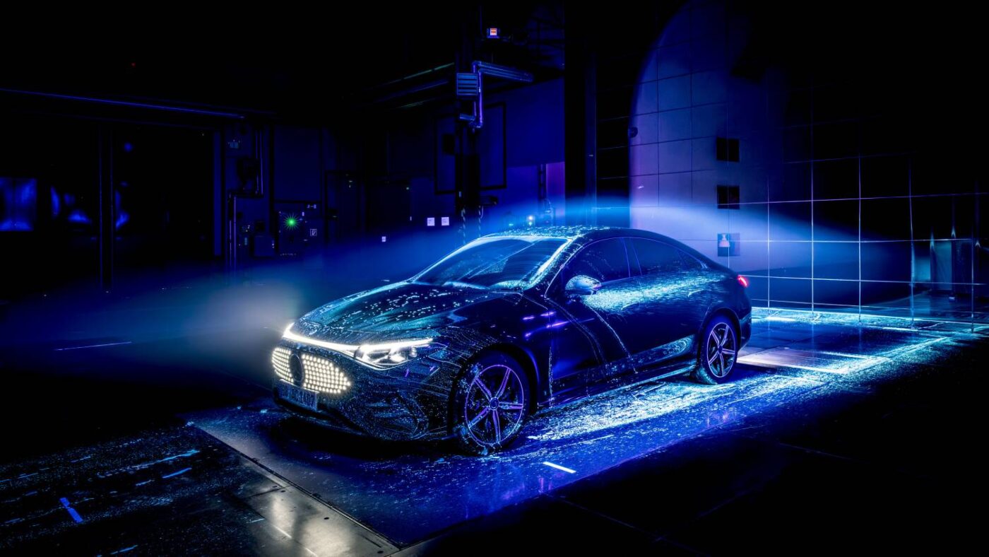 - Unterboden und Diffusoren: Der nahezu vollständig verkleidete Unterboden basiert auf den Konzepten von EQS und EQE. Zwei Diffusor-Varianten optimieren den Luftstrom am Heck – selbst bei Fahrzeugen mit Anhängerkupplung.