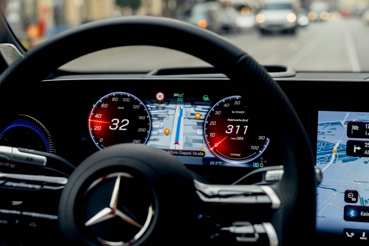Beim Level-2++-System muss der Fahrer jederzeit in der Lage sein, die Fahrzeugkontrolle zu übernehmen – anders als beim Level-3-System im EQS und in der S-Klasse, das eine Übernahmezeit von bis zu zehn Sekunden erlaubt. Die Verantwortung liegt, wie schon bei Level 2, vollständig beim Fahrer.
