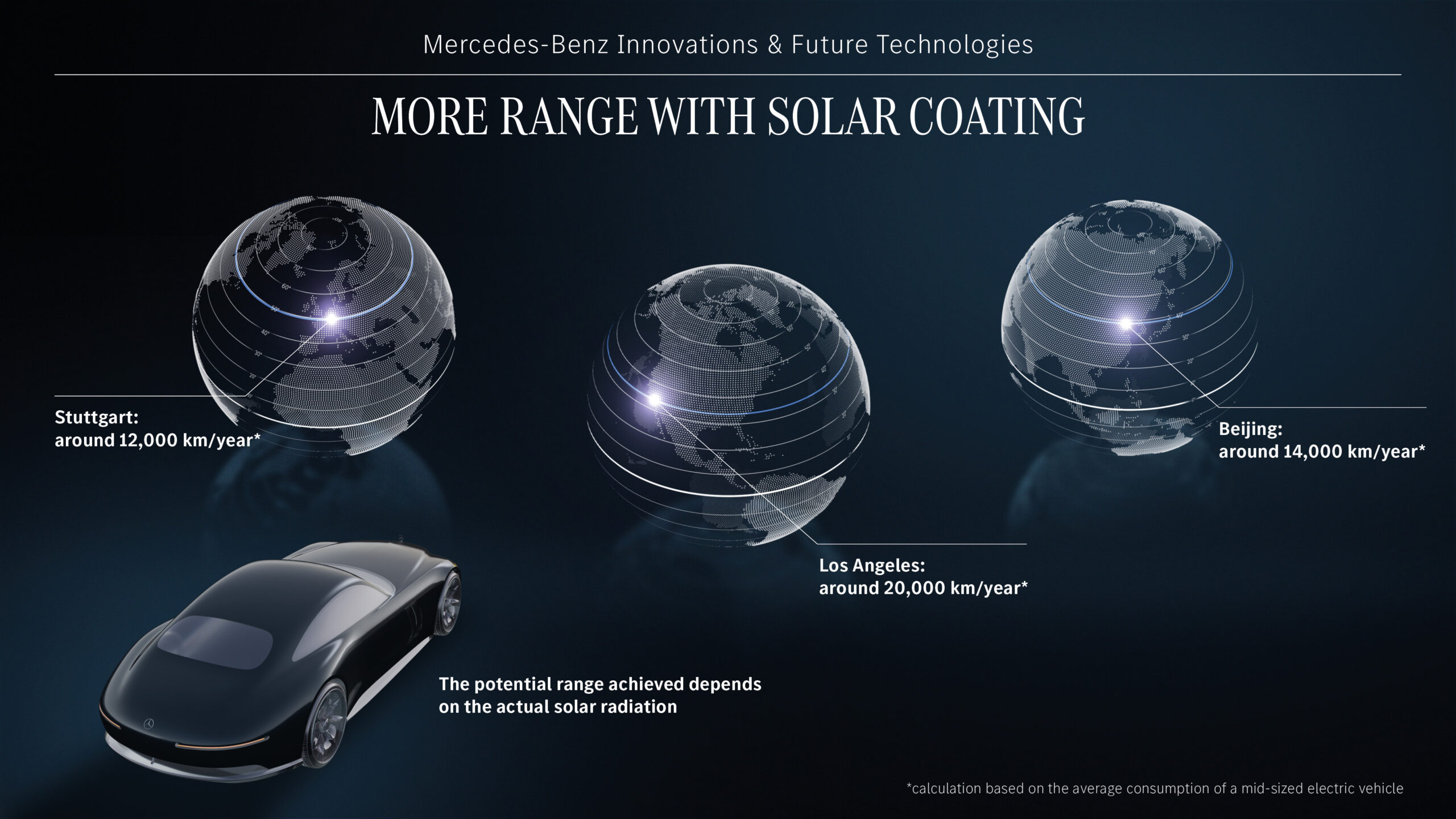 Die hauchdünne photovoltaische Beschichtung kann auf nahezu jede Karosseriefläche aufgetragen werden und liefert – unter idealen Bedingungen – genug Energie für bis zu 12.000 zusätzliche Kilometer Reichweite pro Jahr. Zukunftsmusik? Vielleicht. .
