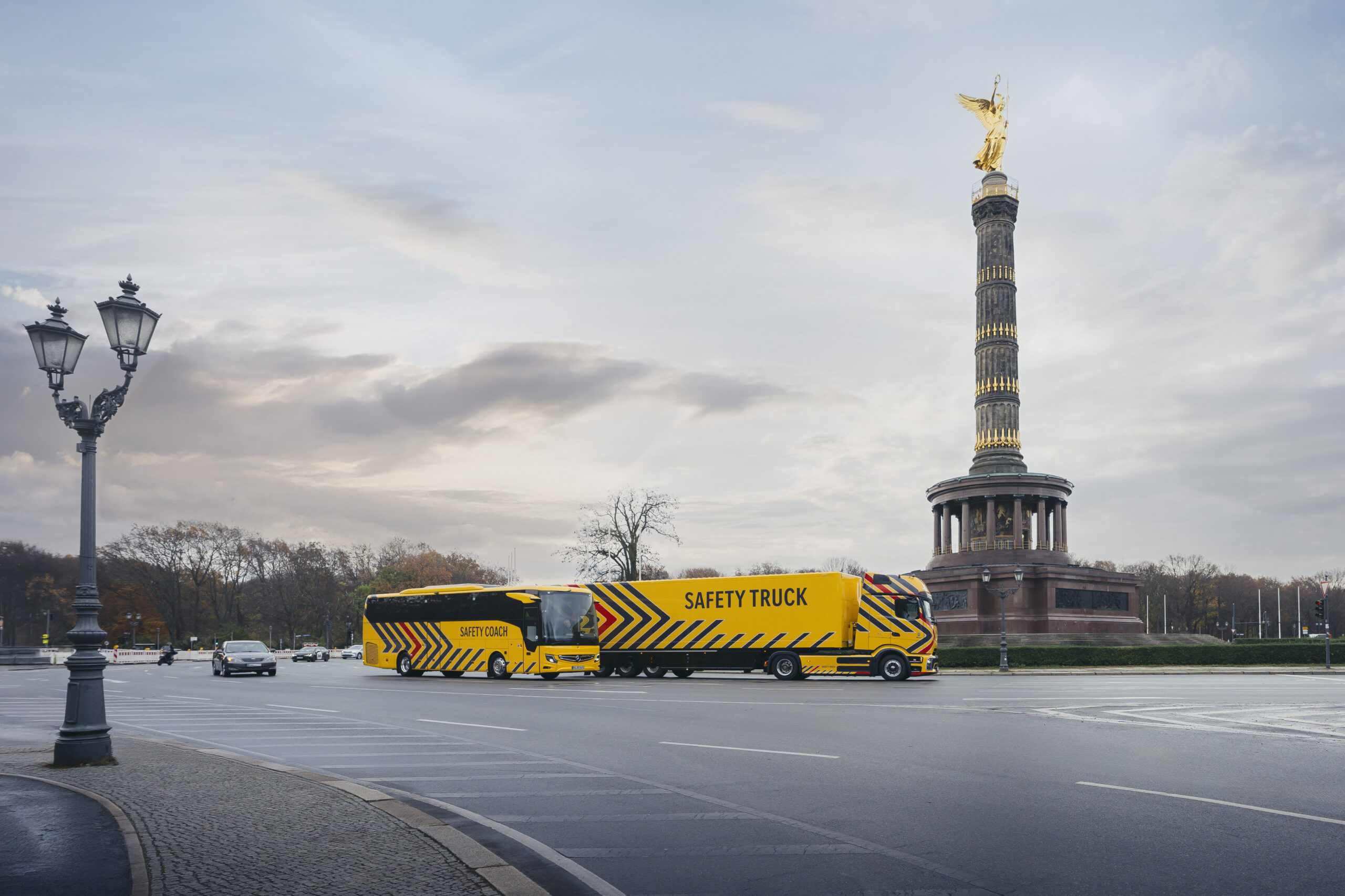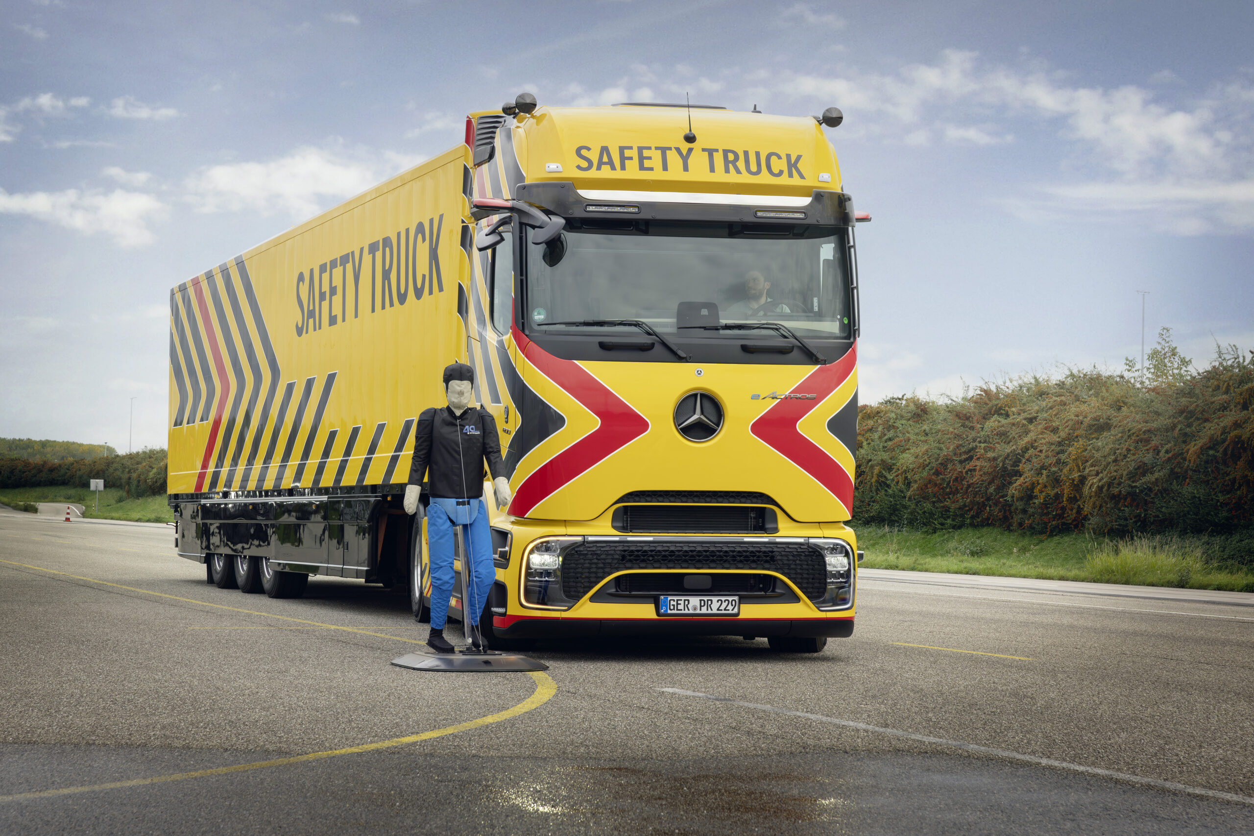 Mit dem nun vorgestellten Mercedes-Benz Safety Truck setzt Mercedes-Benz Trucks ein deutliches Signal: Die Zukunft der Verkehrssicherheit ist elektrisch. Auf einer Presseveranstaltung in Berlin präsentierte der Hersteller einen speziell ausgerüsteten eActros 600 – ein batterieelektrischer Lkw für den Fernverkehr, der im Werk Wörth am Rhein produziert wird. Gemeinsam mit dem ebenfalls gezeigten Mercedes-Benz Safety Coach demonstriert der Konzern damit seinen aktuellen Stand der Sicherheits- und Assistenztechnik.