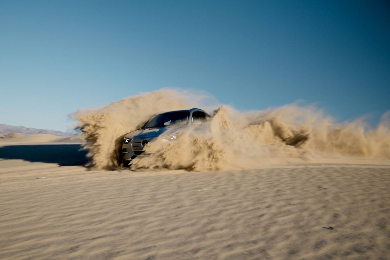 Unter der gleißenden Sonne der Mojave-Wüste stellte sich der neue Mercedes-Benz GLC 400 4MATIC mit EQ Technologie einer der anspruchsvollsten Prüfungen seiner Erprobungsphase. Auf dem heißen Wüstensand Nevadas demonstrierte das SUV eindrucksvoll, wie moderne Elektrotechnik, intelligenter Allradantrieb und fein abgestimmte Fahrwerksysteme zu einem souveränen Fahrerlebnis verschmelzen.