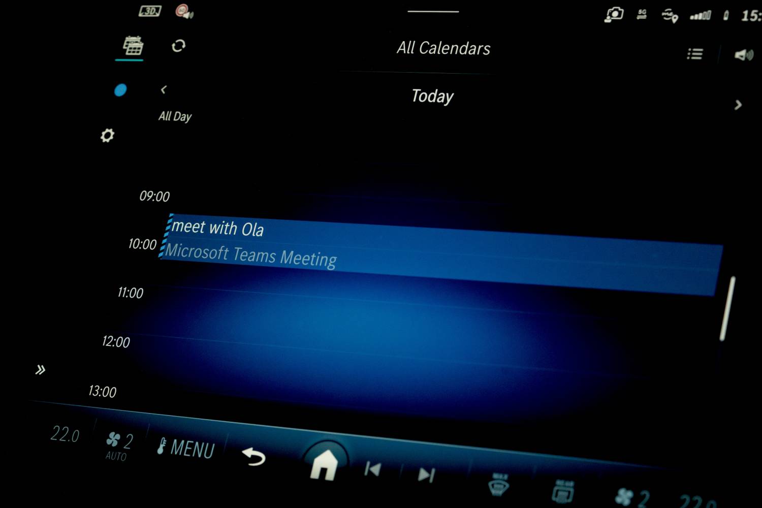 Mit der neuen MBUX Calendar App vereinfacht Mercedes-Benz die Organisation des digitalen Alltags. Die App ersetzt den bisherigen Kalender und ermöglicht einen zentralen Login für verschiedene Produktivitäts-Dienste, darunter MBUX Notes, Kalenderfunktionen und künftig auch Meetings. Die Integration in das Navigationssystem erleichtert den Tagesablauf: Anstehende Termine werden automatisch mit passenden Routen verknüpft. Zudem lassen sich Microsoft Teams-Anrufe direkt aus der App starten. Über den Sprachassistenten können Fahrerinnen und Fahrer sich nun auch ein Tagesbriefing oder eine kompakte Übersicht ihrer Termine vorlesen lassen.