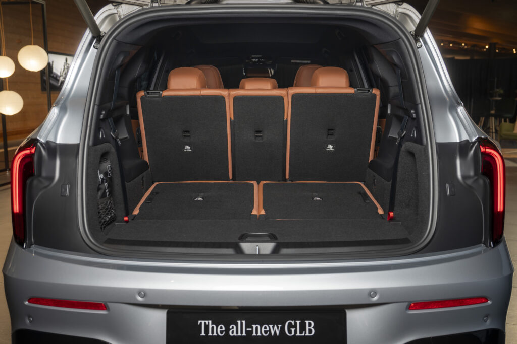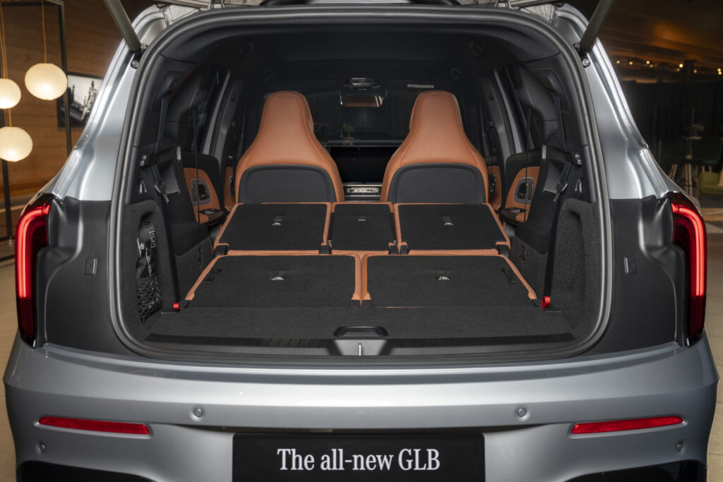 Für bequemes Beladen ist die Kofferraum-Öffnung der neuen GLB Generation großzügig geschnitten. Der hintere Kofferraum fasst dazu bis zu 540 Liter – bzw. 480 in der Siebensitzer-Variante, mit umgeklappten Fondsitzlehnen sind es sogar 1.715 bzw. immer noch 1.605 Liter. Im Gegensatz zum Vorgänger hat sich der Kofferraum sogar noch vergrößert – beim 5-Sitzer um 45 Liter, beim 7-Sitzer in Summe um 15 Liter. Umgeklappt gewinnt man nun 5 Liter beim 5-Sitzer hinzu, während man beim 7-Sitzer gegenüber der Vorgängergeneration 15 Liter einbüßt. Rechnet man den Frunk hinzu, gewinnt man jedoch an Stauraum – von 667 bzw. 597 Liter statt bislang 495/465 Litern sogar 172 bzw. 132 zusätzliche Liter.