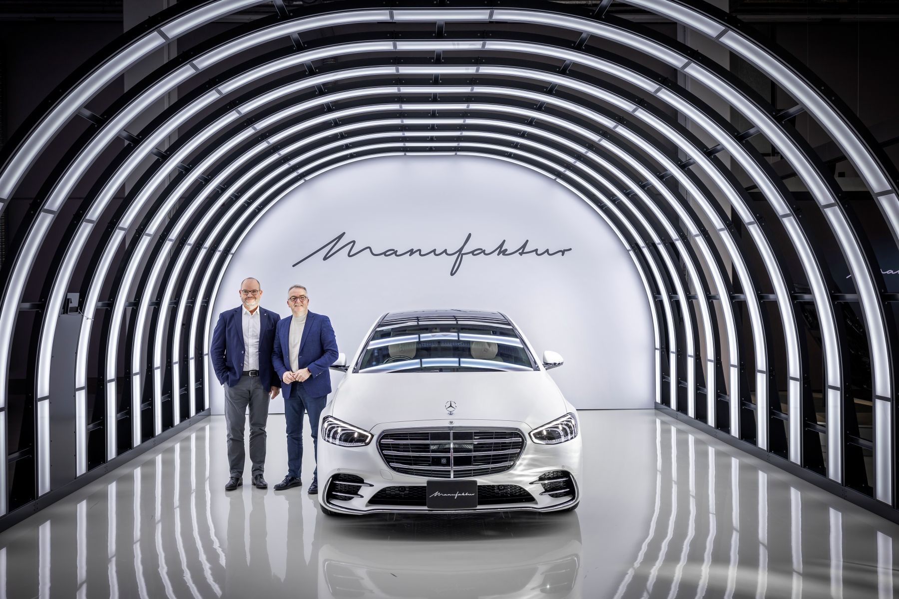 Übrigens, das Bild scheint in der Manufaktur in Sindelfingen aufgenommen worden zu sein, wo man zuleetzt die exklusiven Ausstattungen der S-Klasse (VorMopf) präsentierte – siehe dazu auch folgendes Bild hier: