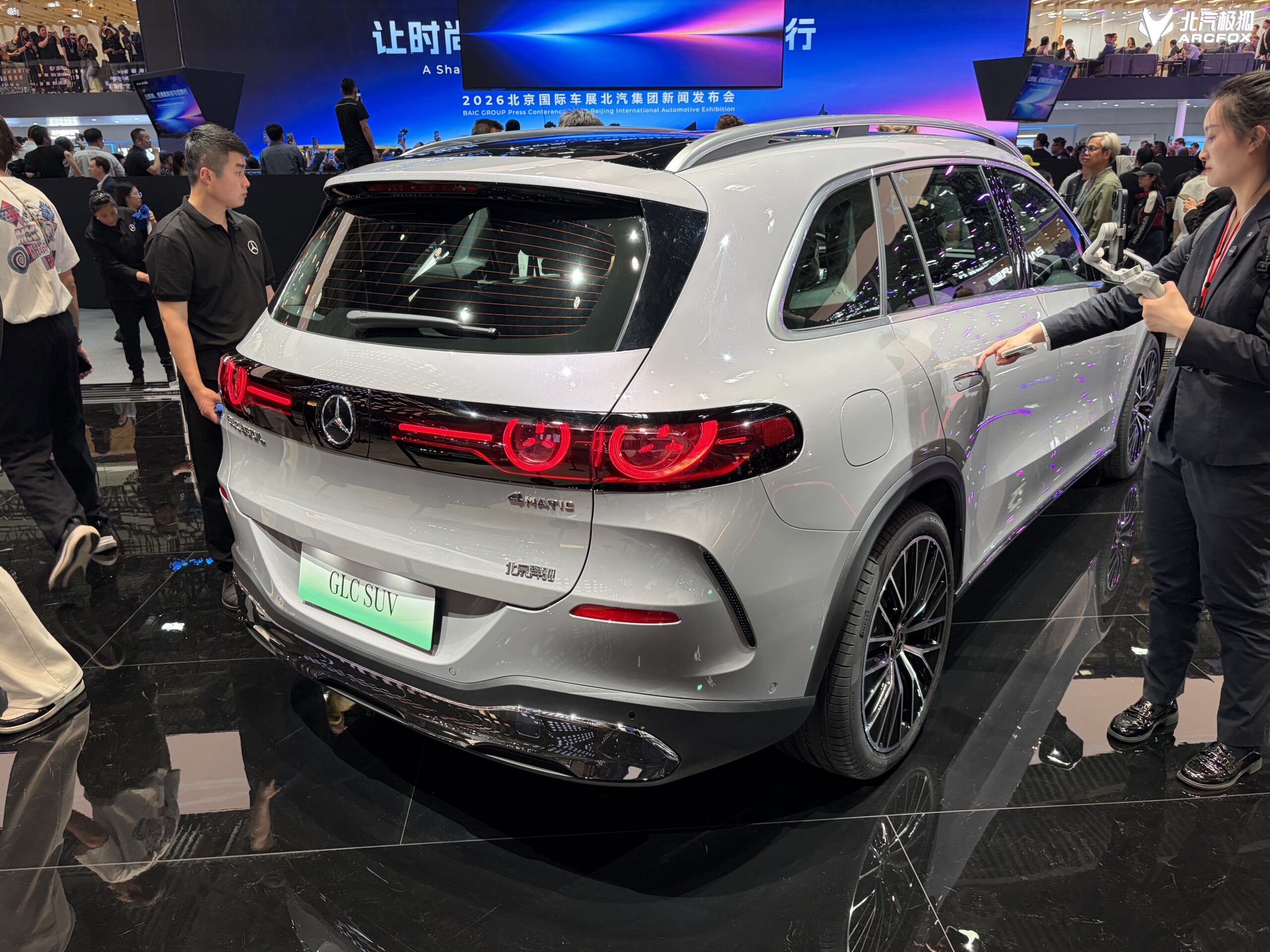Erwartungsgemäß hat Mercedes-Benz auf der Auto China 2026 in Peking die Langversion des GLC EQ Modells vorgestellt – mit 4,933 Metern gut acht Zentimeter länger, als die europäische Variante des Modells – aber auch in der Höhe legt das Modell in China um sieben Zentimeter auf 1,710m zu. Produziert wird das Fahrzeug und kommt somit nicht aus der Produktion von Mercedes-Benz in Bremen.