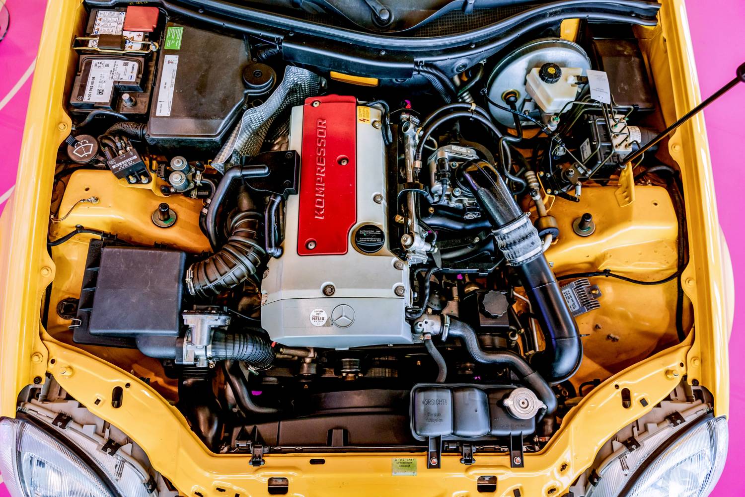 Der SLK ist sportlich, ohne auf Komfort zu verzichten. Verkaufsstärkster Typ ist der SLK 230 Kompressor. Sein 142 kW (193 PS) starker Vierzylindermotor mit mechanischem Kompressor beschleunigt in 7,6 Sekunden auf 100 km/h und erreicht 231 km/h Höchstgeschwindigkeit. Die Aufladungstechnologie hat historische Vorbilder, etwa bei der legendären Mercedes-Benz S-Reihe der 1920er Jahre, und kombiniert Leistung mit effizientem Verbrauch.