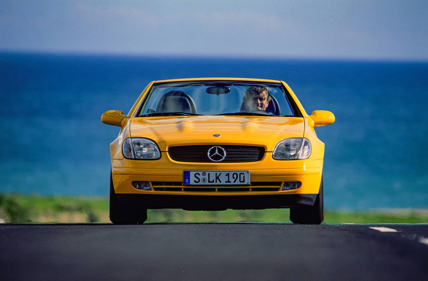 Bereits bei seiner Premiere setzte der SLK auf Ausdrucksstärke durch kräftige Farben wie yellowstone (685) und später merlinblau, magmarot und lotosgelb. Dazu kommt ein frisches, kompaktes Design: Kurze Karosserieüberhänge, „Powerdomes“ auf der Motorhaube und elegante Proportionen machen den Roadster zum Blickfang auf jeder Straße.